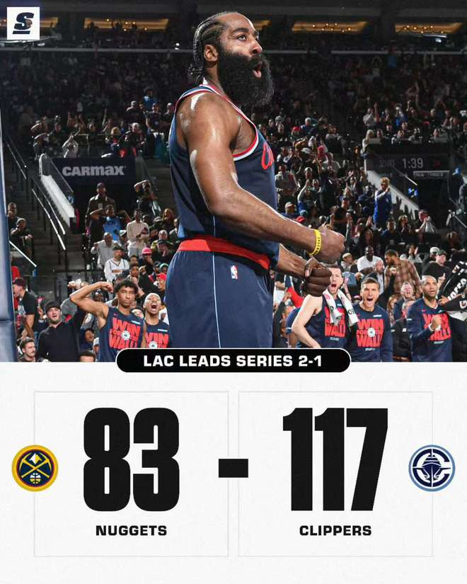 快船117-83掘金!让掘金无奈的不是输球,而是哈登发生了两大变化
